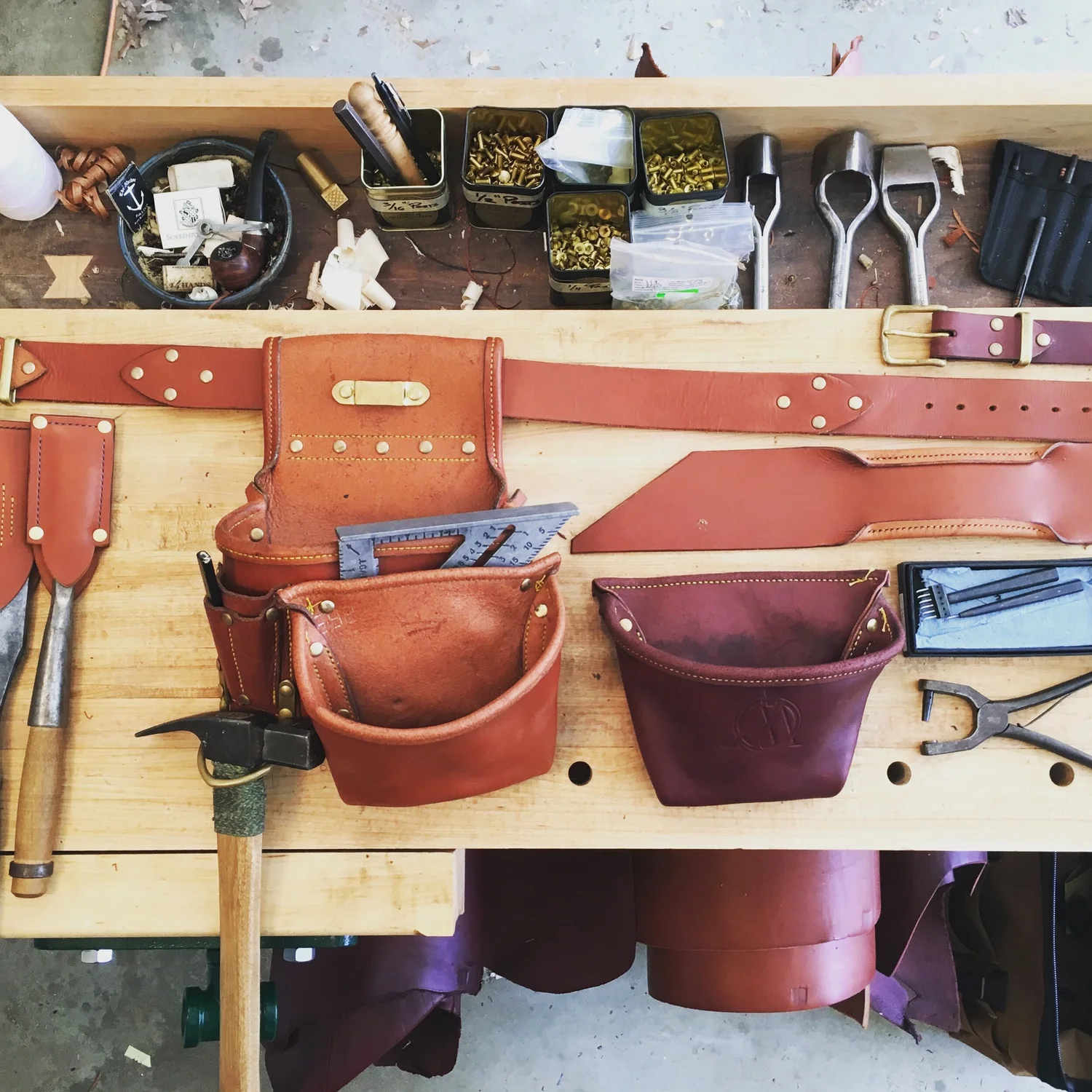Hand Making Leather Tool Bags Om Workbench
